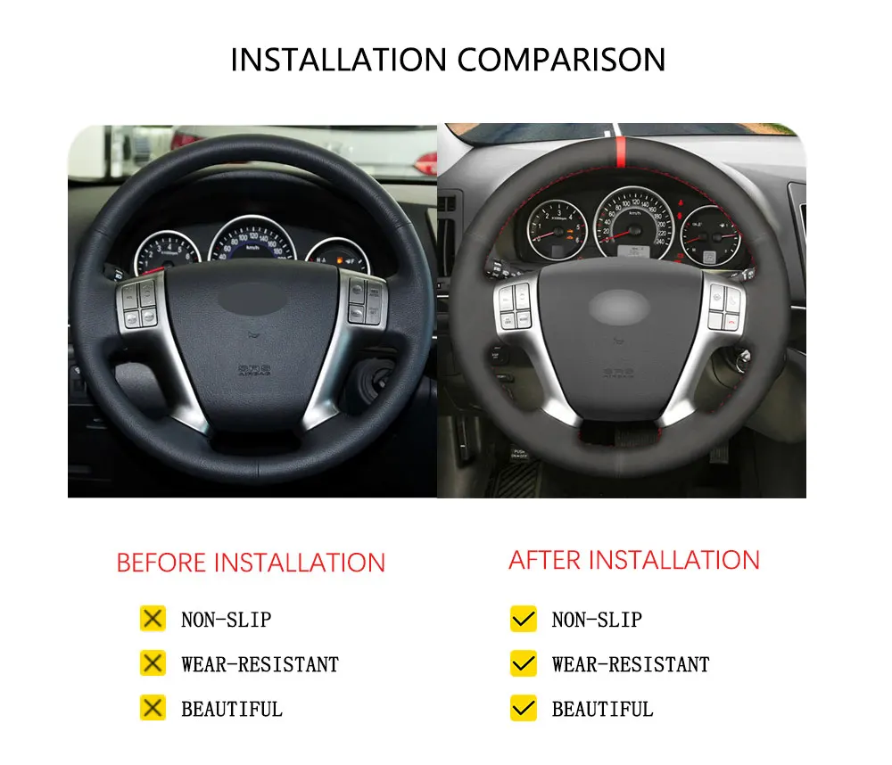 Черная искусственная кожа Handsewing без скольжения чехол рулевого ...