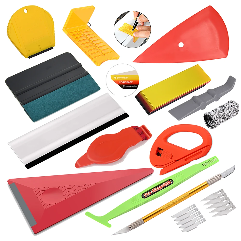 1 x бритвенный скребок1x90 градусов Помощь Доска1 х замшевый войлочный скребокБелый скребок с резиновыми краями-1 шт.1 х Красный микрофетровый скребок1 красный Силиконовый скребок1 х Зеленый магнитный Ракель1 x ручка с двойным концом для ножей с 10 лезвиями1 виниловый резак1 x рукав для пальцев1 х 135 градусов Ракель1 х 3-слойный ррф Ракель (75 & 85 дюрометр)1 х Красный Завоеватель Ракель