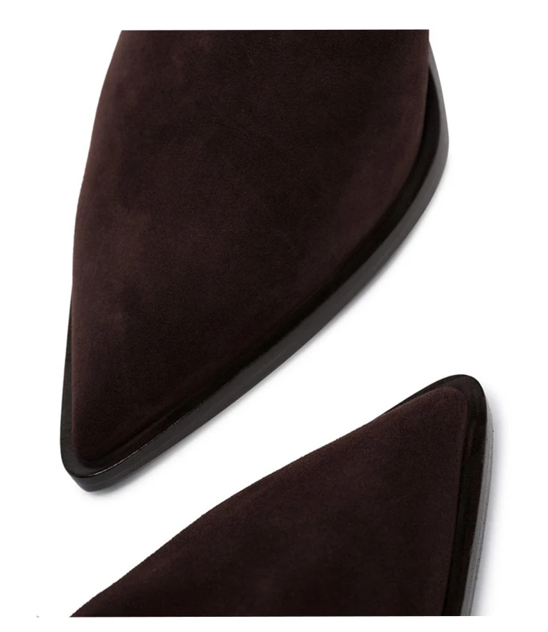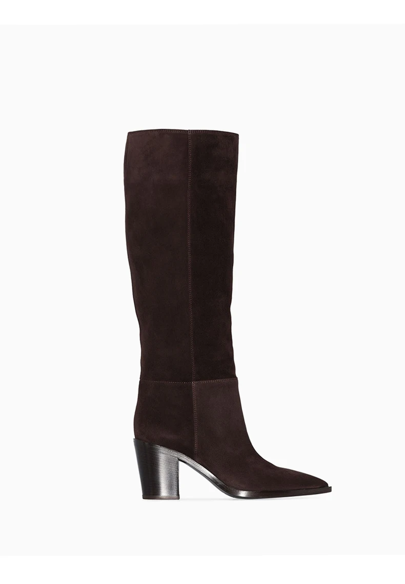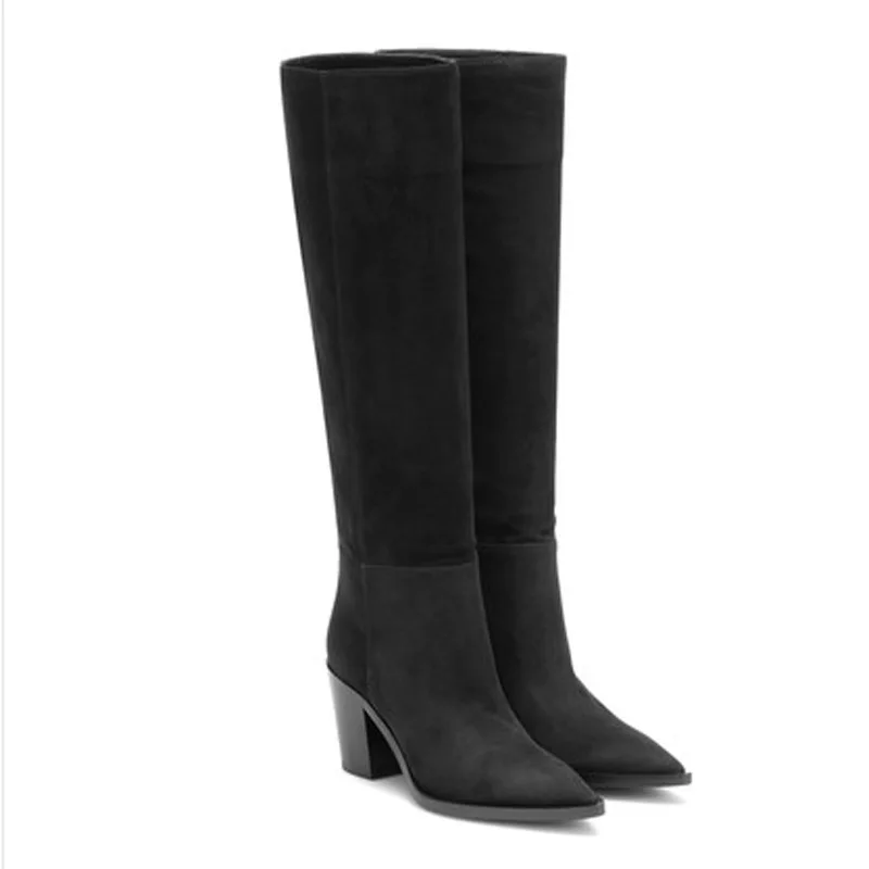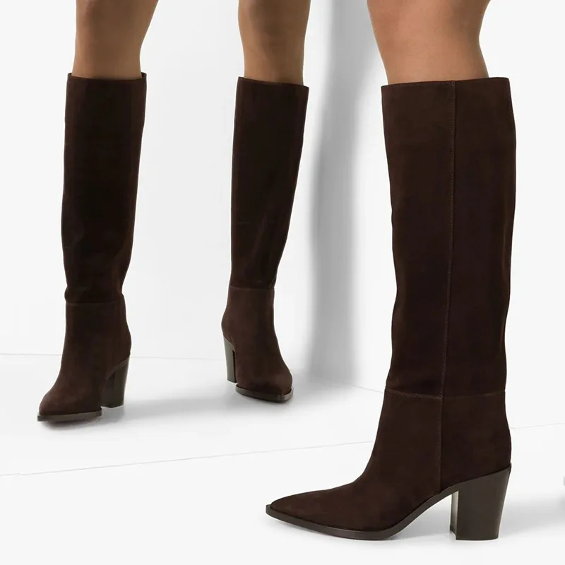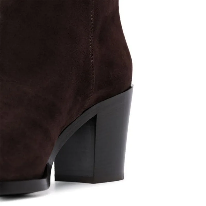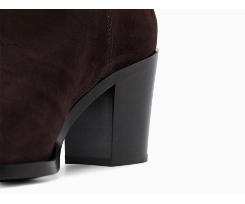 Сапоги женские коричневые из коровьей замши, на толстом каблуке, с ...