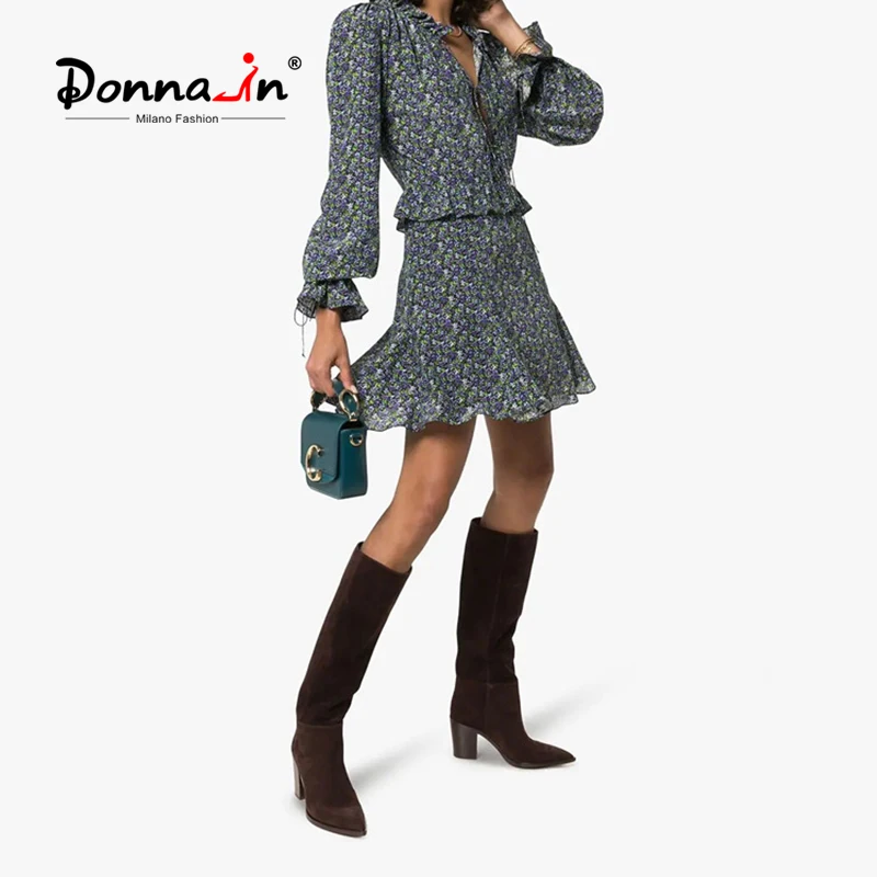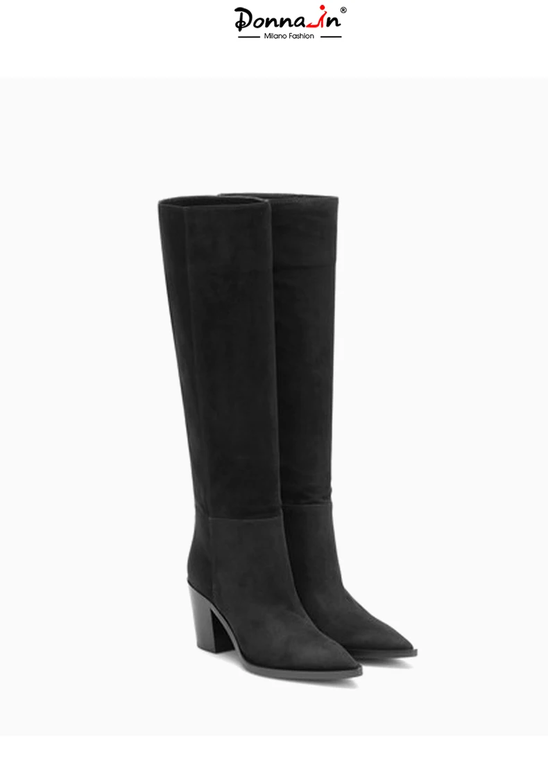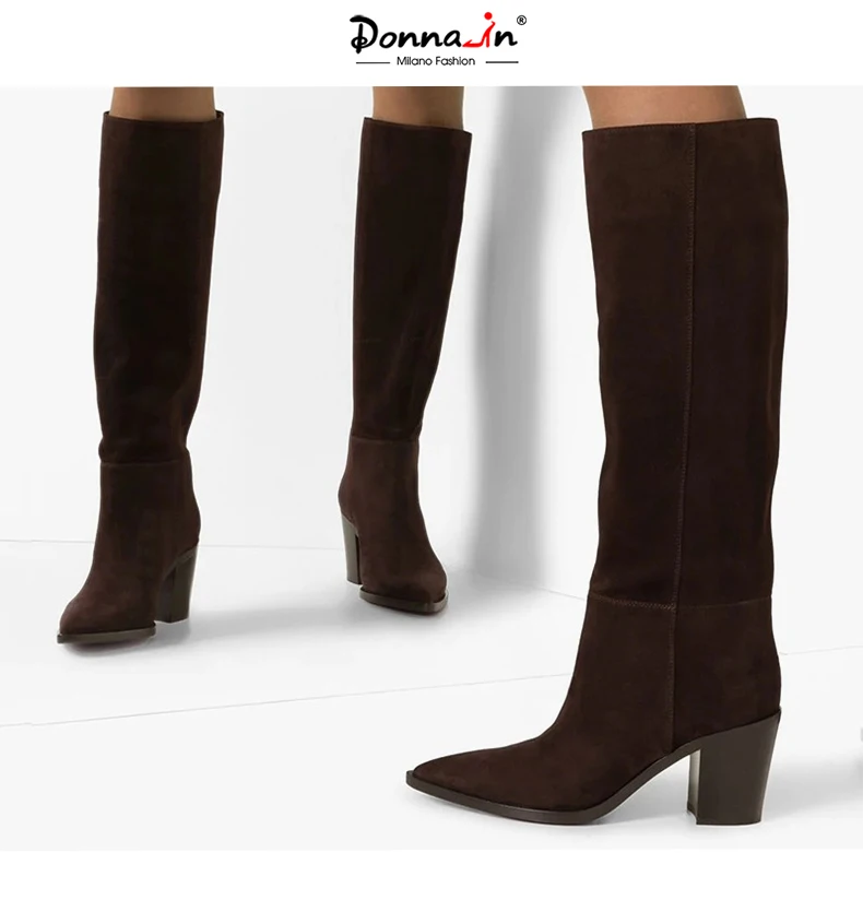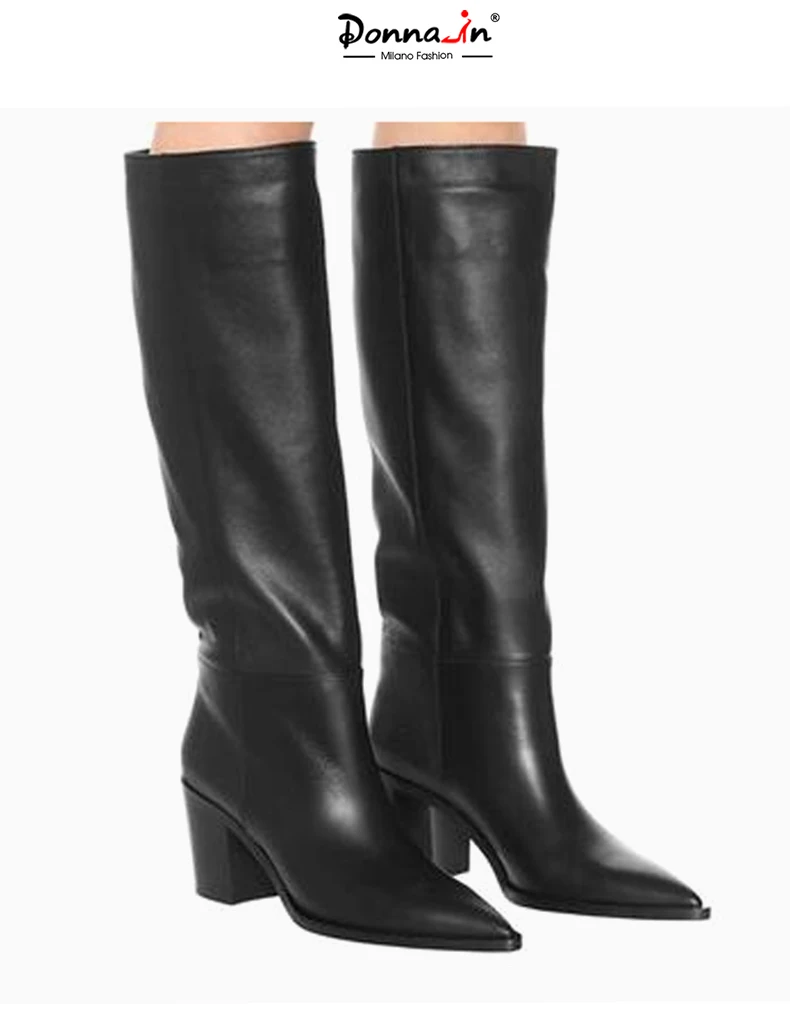 Женские сапоги в стиле ретро Donna-in, осенние высокие сапоги до колена, на каблуке Chuncy, с острым носком, без застежки, в западном стиле, большие размеры 35-45, 2021