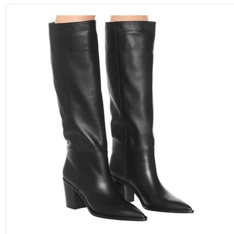 Ботинки женские высокие из натуральной кожи, с острым носком, на шп...