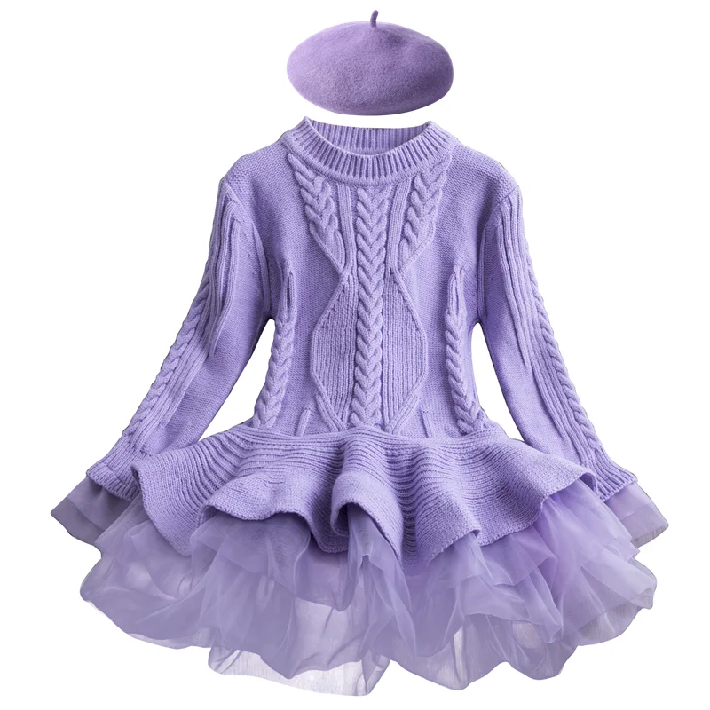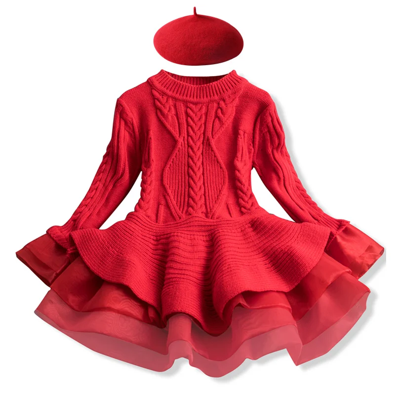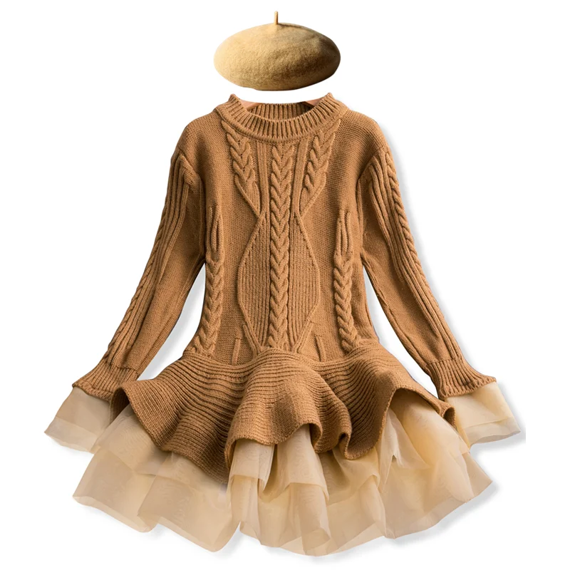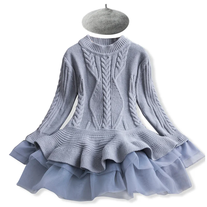 Осенне-зимнее платье для девочек, свитер, вязаная детская одежда, о...