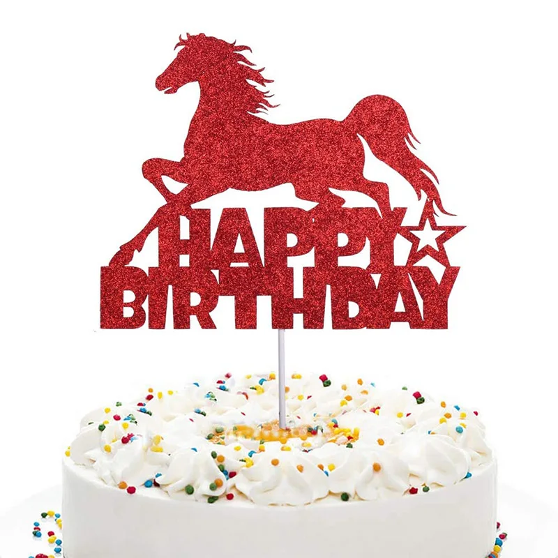 Блестящий Топпер для торта «С Днем Рождения» для скачек на лошадях, декорация для торта на день рождения, ковбойская вечеринка на день рождения