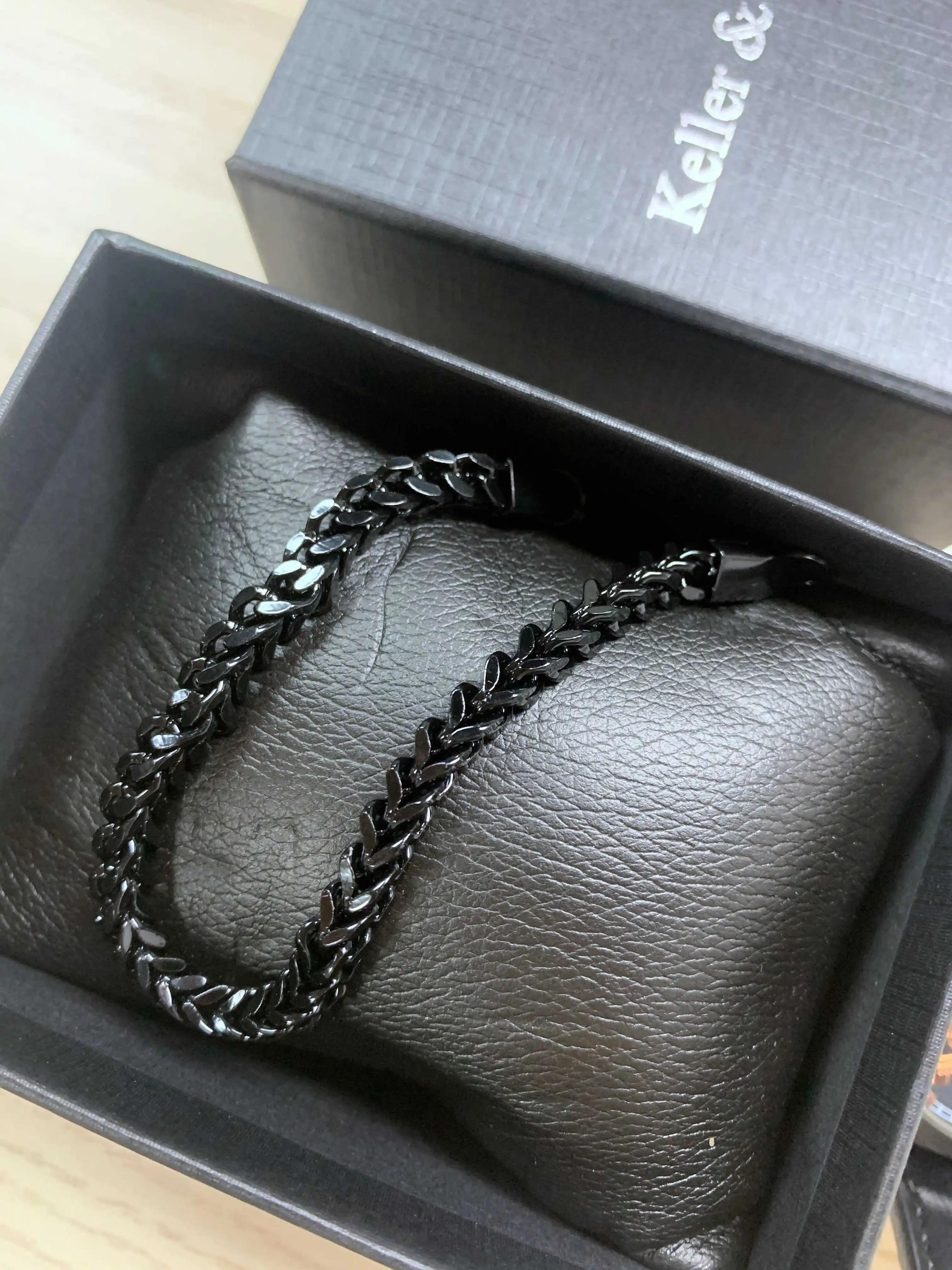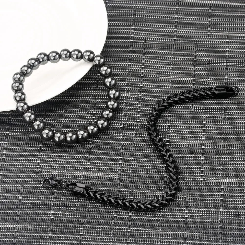 Браслет и наручные часы для мужчин, подарочный набор из черного ква...