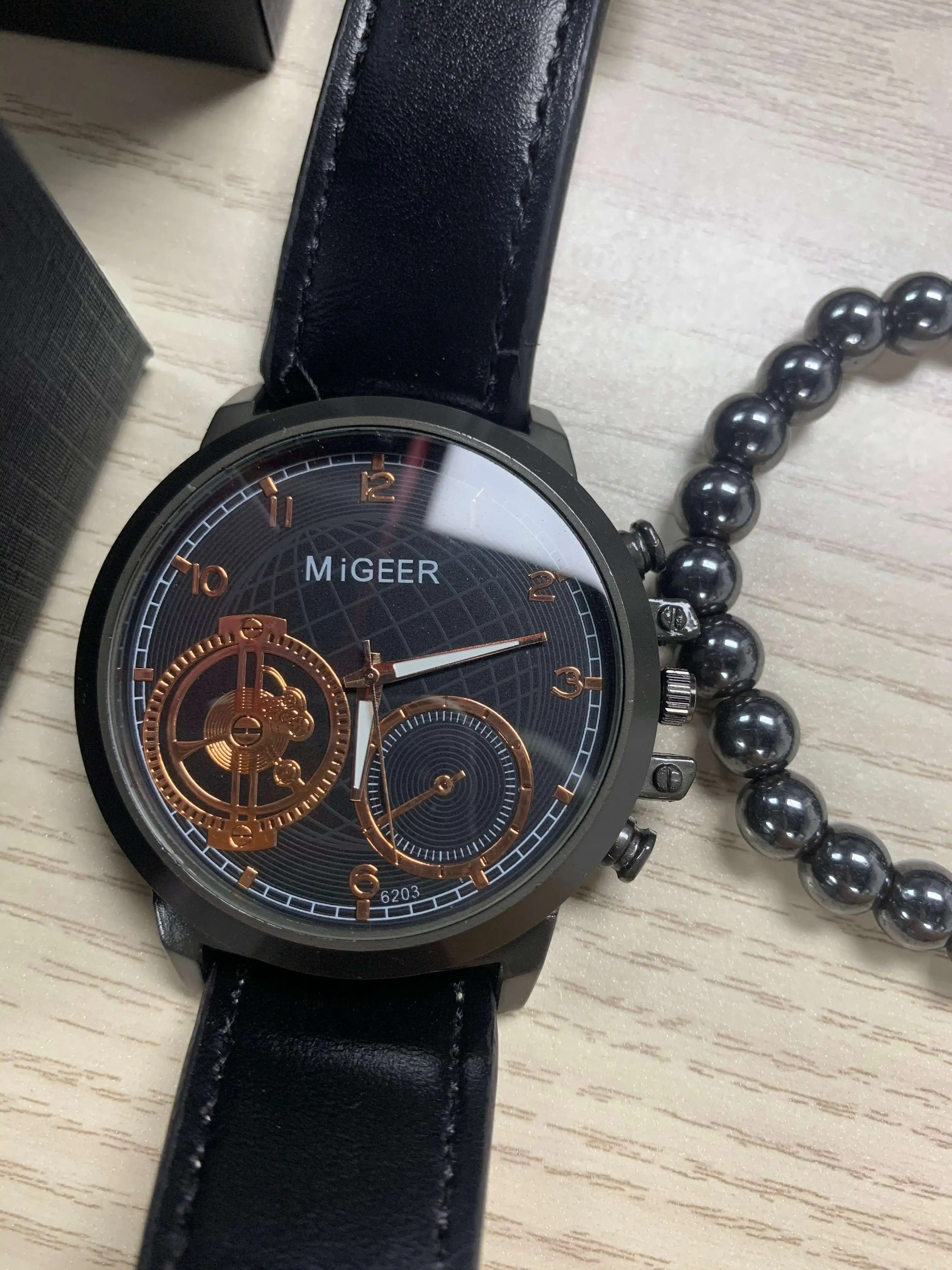 Набор модных мужских часов и браслетов, мужской черный выпуск из 3 ...