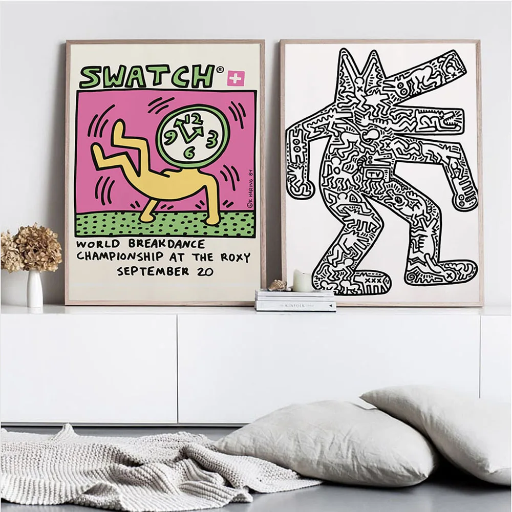 Картина на холсте Haring Break, танец злодея, принт персонажа из мультфильма, настенный художественный плакат, картина, украшение для дома, настенный плакат