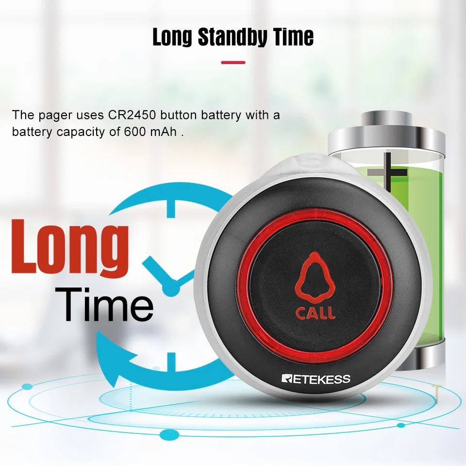 5 шт. RETEKESS TD019 433,92 МГц кнопка вызова передатчик беспроводной пейджер для официанта обслуживание ресторан кафе кальян клиника
