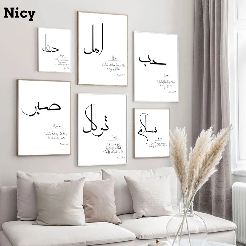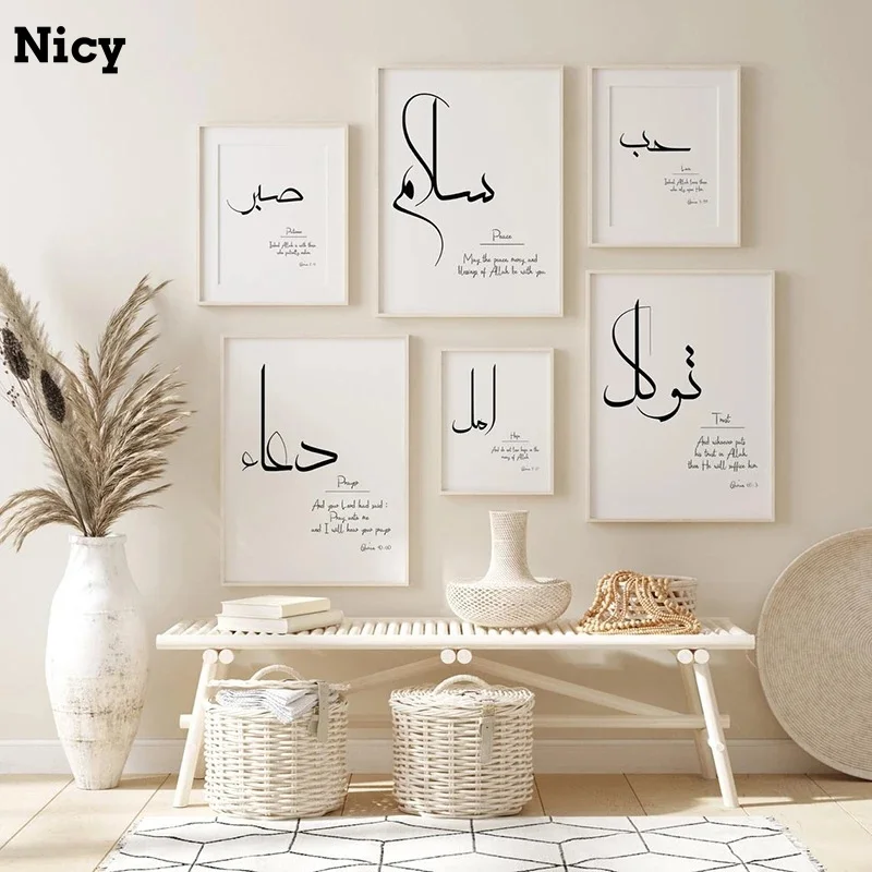 Арабская каллиграфия, Исламская Картина на холсте, мотивационные цитаты, плакат, простота, Настенная картина, современная картина, украшение для дома