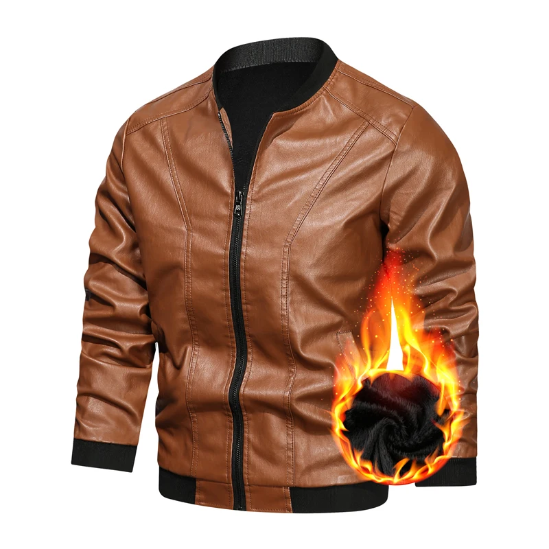 Мужская кожаная флисовая куртка, однотонная тонкая приталенная курт...