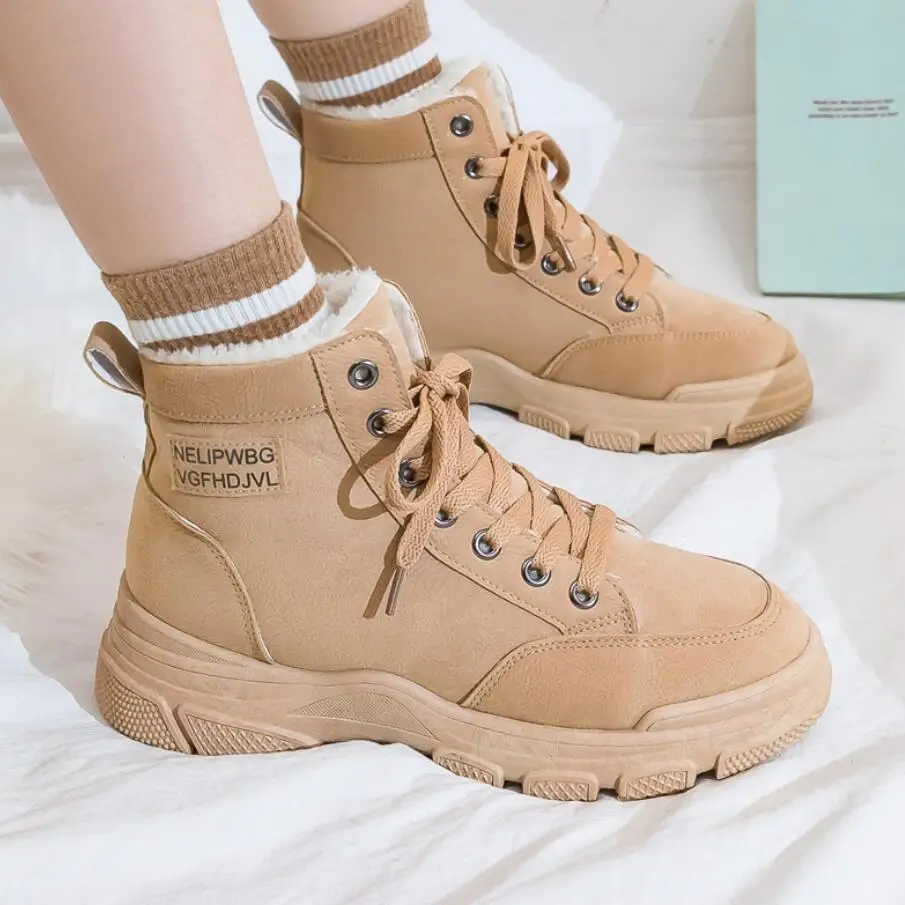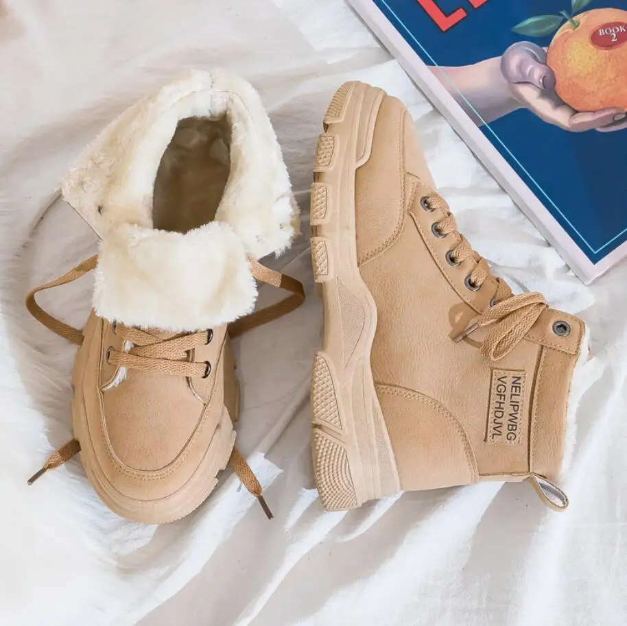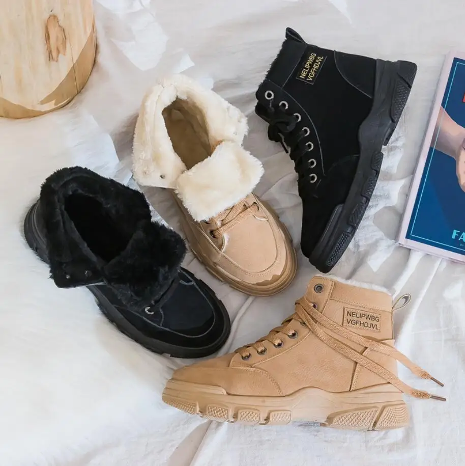 Зимние женские зимние сапоги, кожаные женские теплые сапоги на толстой плюшевой подкладке, водонепроницаемые женские замшевые сапоги на танкетке, женские сапоги