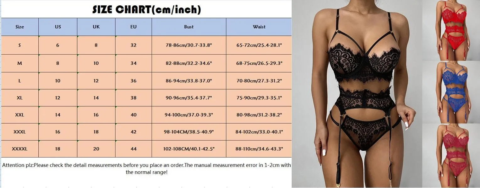 Вы получите:1 комплект пикантных пижам (1 бюстгальтер 1 подвязка 1 стринги)