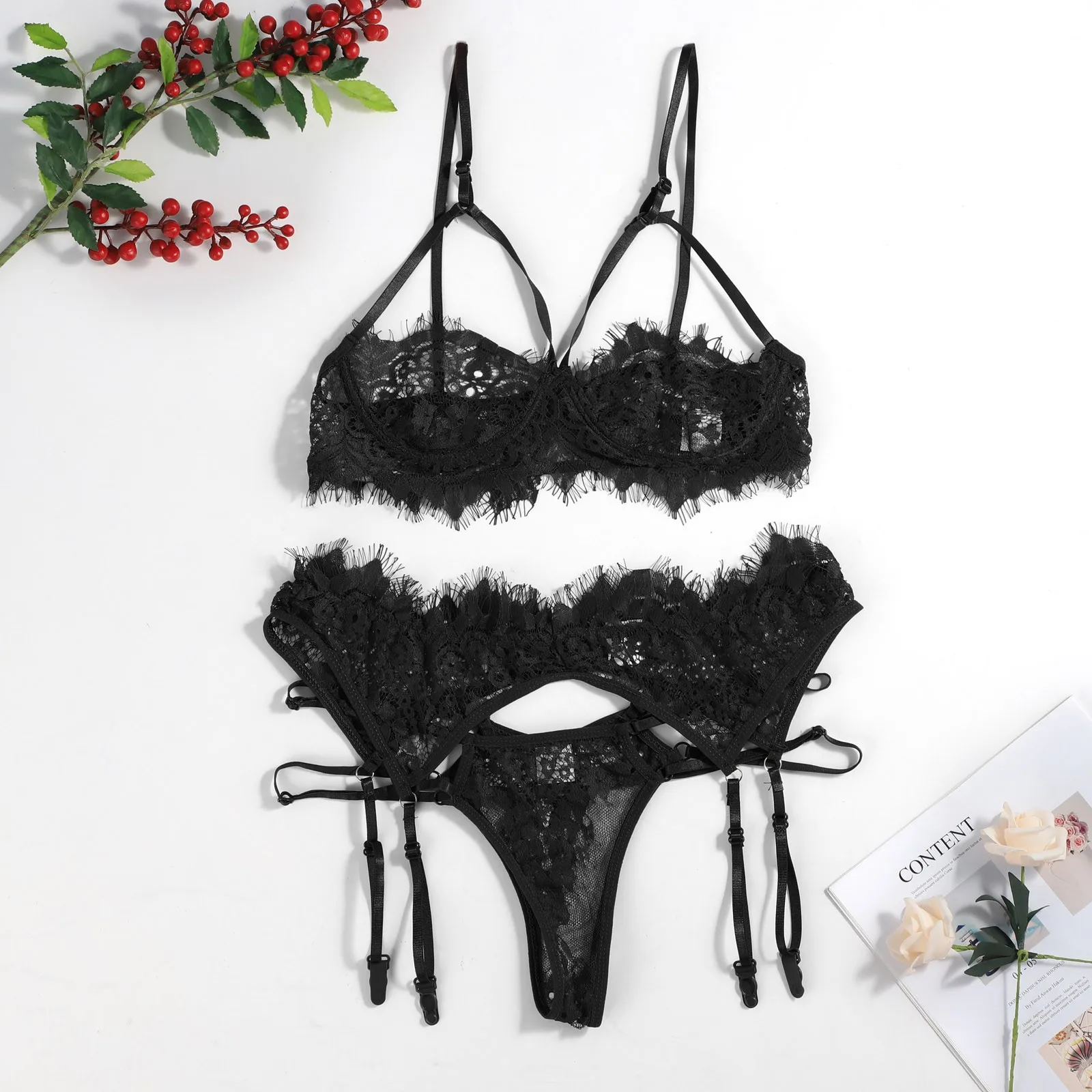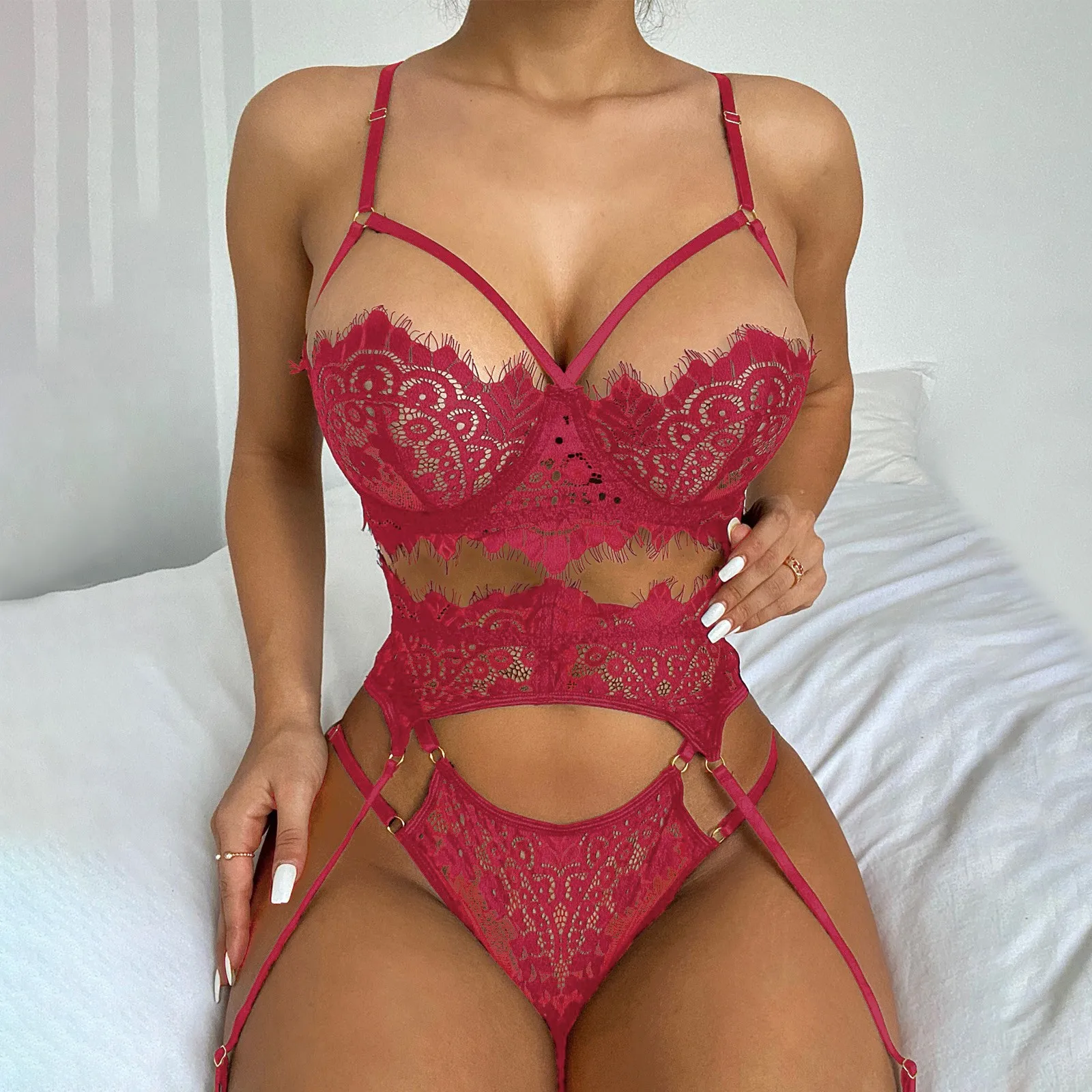 Женские эротические костюмы, сексуальное нижнее белье, бюстгальтер без чашек, подвязки, трусы, корсет, женское нижнее белье, кружевные прозрачные сетчатые экзотические комплекты