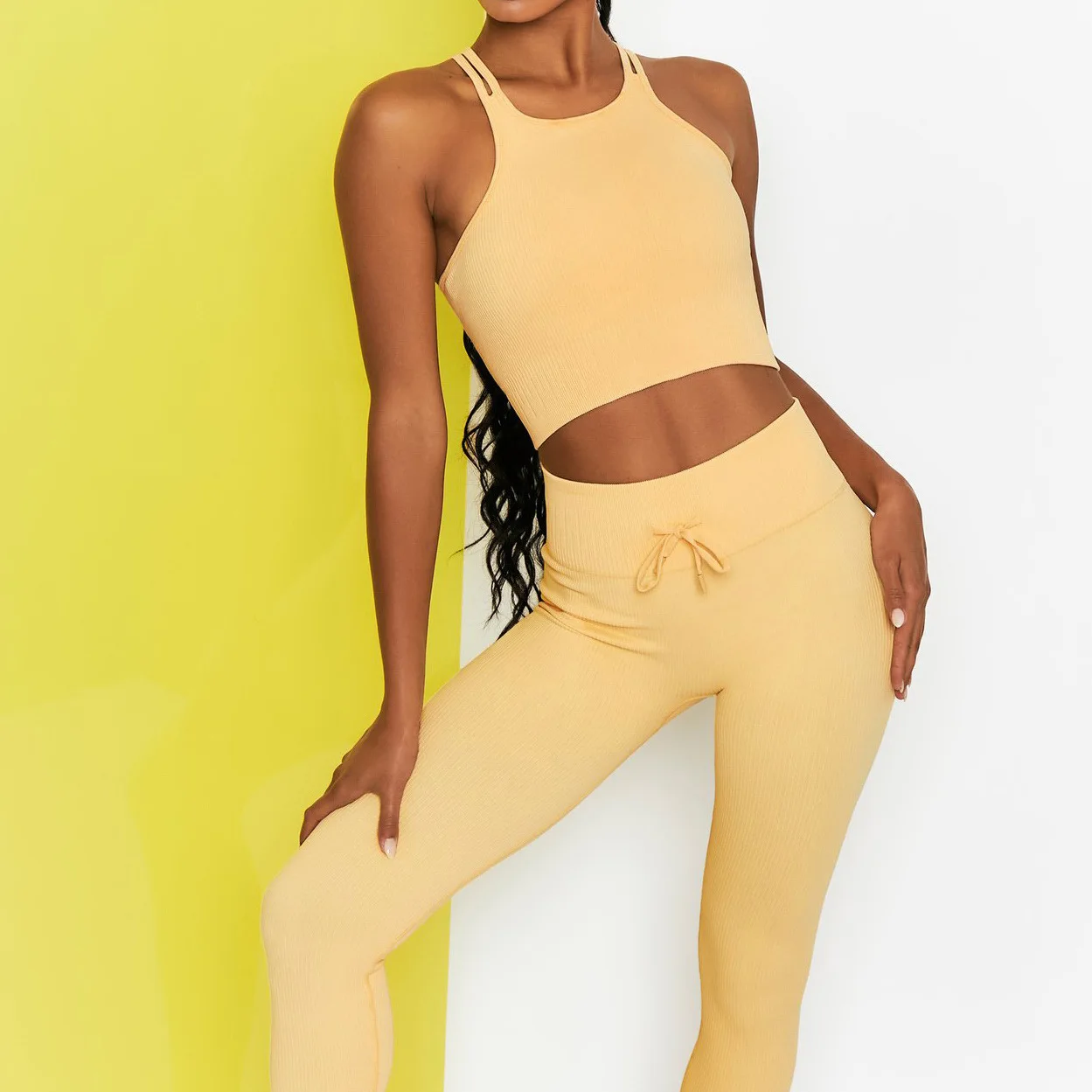 Женский комплект одежды для йоги, бесшовный спортивный бюстгальтер с высокой талией и леггинсы на шнуровке, комплект из 2 предметов для фитнеса и тренировок, 6 цветов, осень 2021