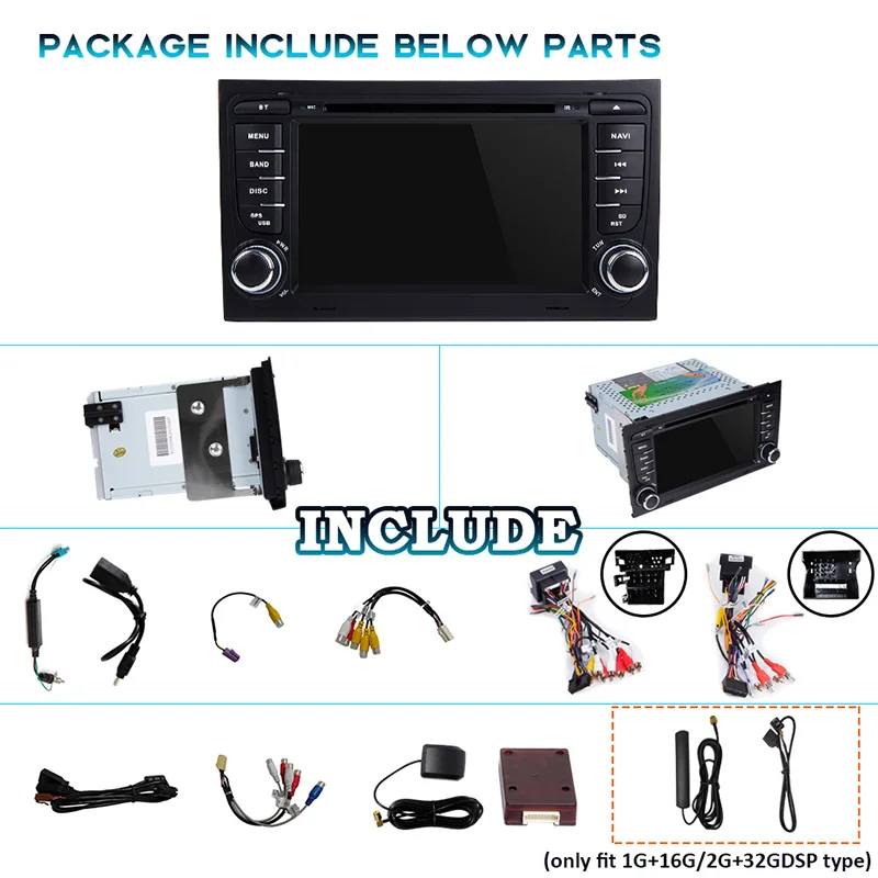 Применимые модели и годы:Для Audi A4 B6 (8E/8н)(2000-2006)Для Audi A4 B7 (8E/8н)(2004-2008)Для Audi S4 B7 (8E/8н) (2005-2008)Для Audi S4 B6 (8E/8н)(2003-2005)Для Audi RS4 (2002 -2008)Для Audi RS4 B7 (8E) (2006-2008)Для Audi Seat Exeo(2008-2012)Хотя мы приложили все усилия, чтобы убедиться, что данное устройство будет совместимо с указанными транспортными средствами, пожалуйста, проверьте год, размеры и форму центральной консоли ваших транспортных средств перед покупкой.1. Подарок = инструменты + микрофон + копия файлов карты в GPS внутри (вы можете использовать gps напрямую, не включая карту карты).