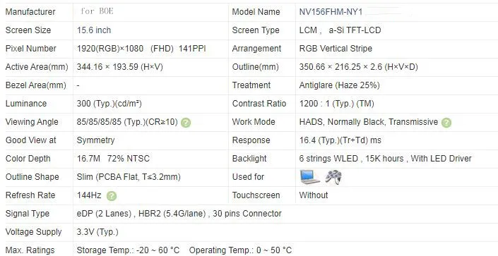 model numberNV156FHM-Ny1 NV156FHM Ny1