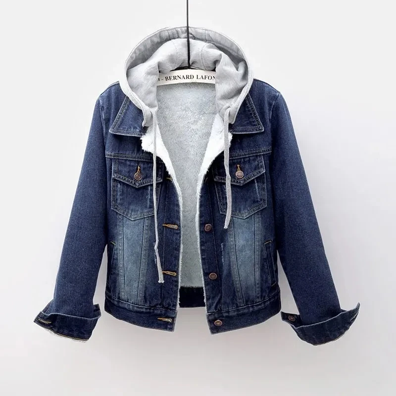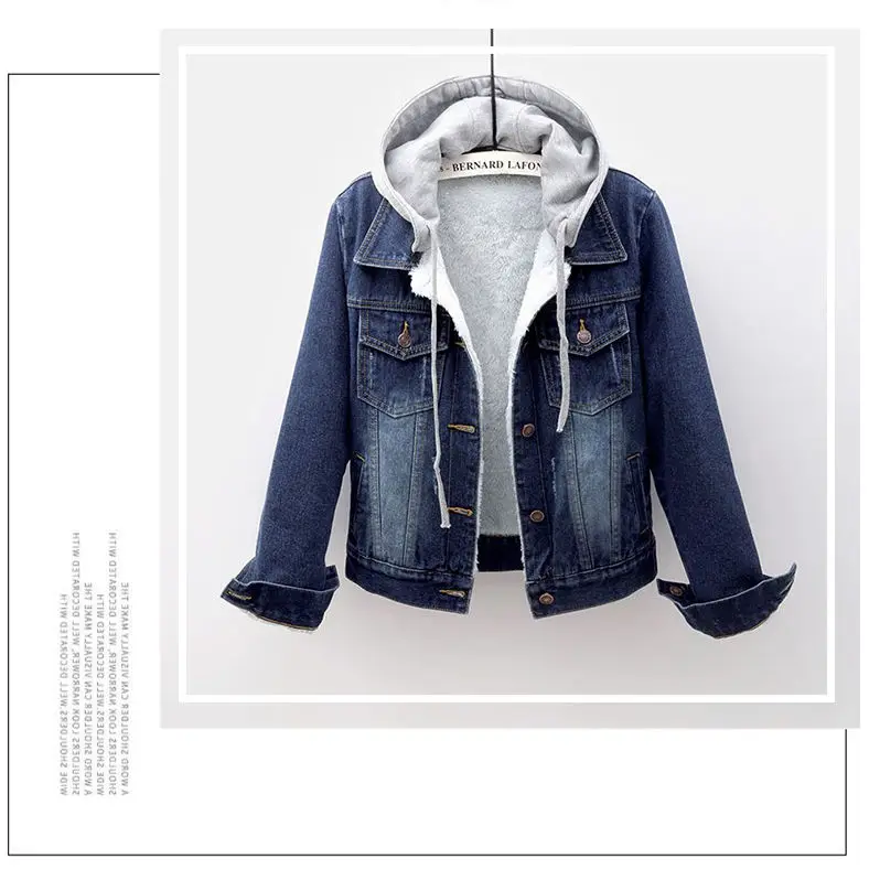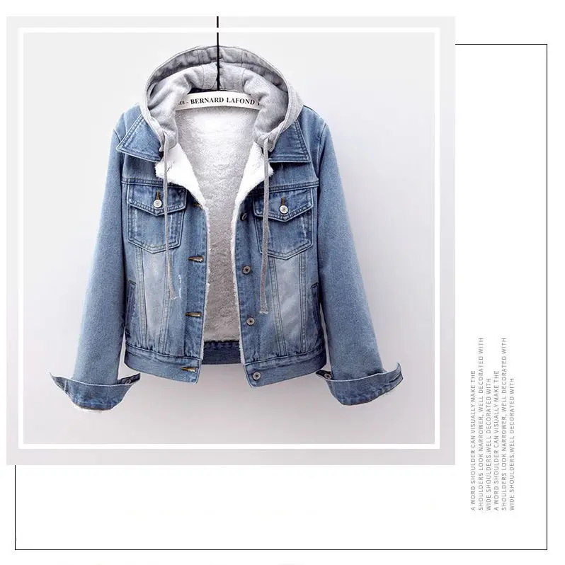 Новая зимняя утепленная короткая джинсовая куртка с капюшоном, женские модные облегающие теплые пальто из овечьей шерсти, уличная одежда, джинсовые куртки BF со съемной шапкой