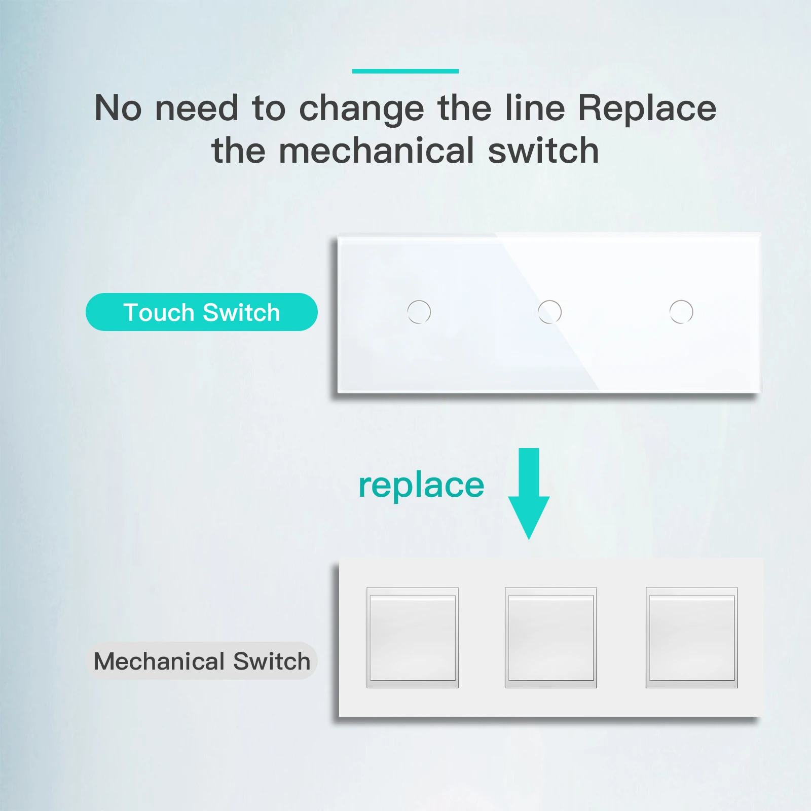 Переключатель света BSEED, тройной сенсорный, европейские Настенные переключатели, 369 кнопок, двухсторонний кристалл, закаленное стекло, Синяя подсветка, 240 в, переключатель светодиодной лампы