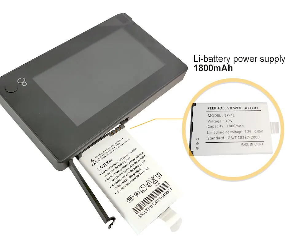 Цифровой видеоглазок с дверным звонком, 4,3 дюйма, с питанием от литиевого аккумулятора