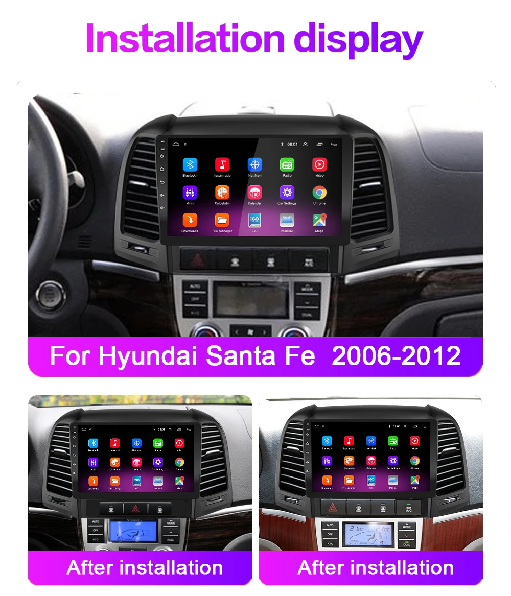 Android 9,0 автомобильный Радио мультимедийный видео плеер для Hyundai Santa Fe 2 2006 2007 2008 2009 2010 2011 2012 GPS WiFi BT аудио 2 DIN