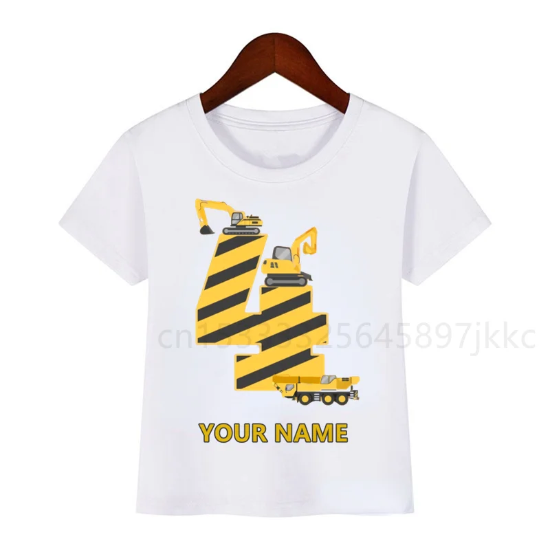 Детская футболка с рисунком экскаватора, строительного грузовика, бульдозера, крана, имени, футболка для мальчиков и девочек, забавный подарок на день рождения, футболка