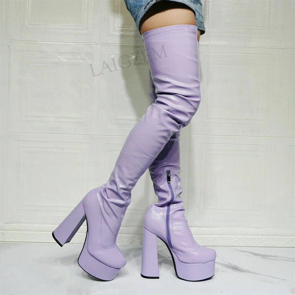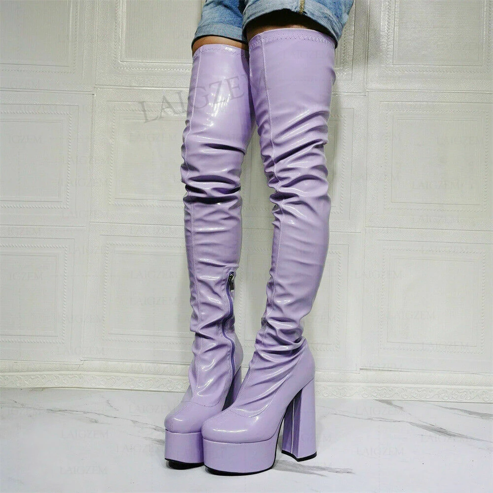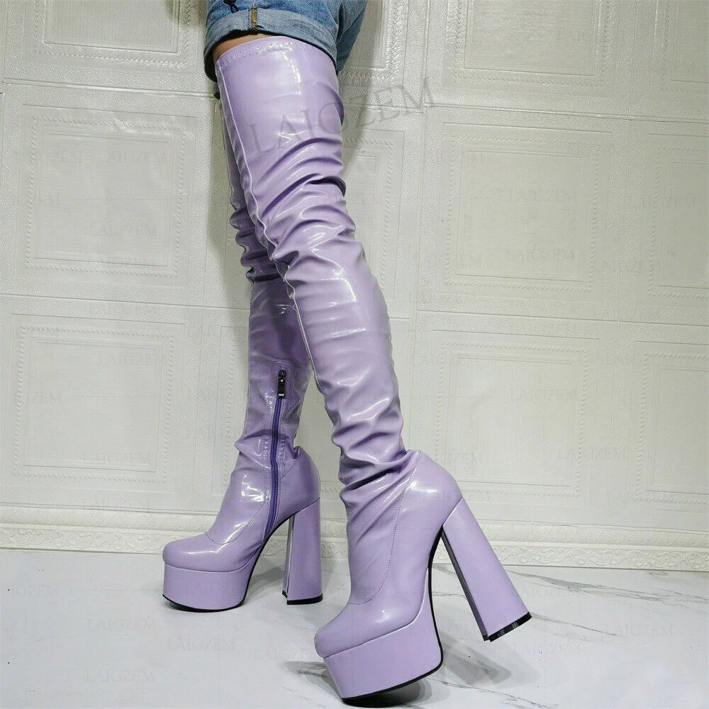 BERZIMERженские сапоги до бедра на высоком каблуке; Латексные эласт...