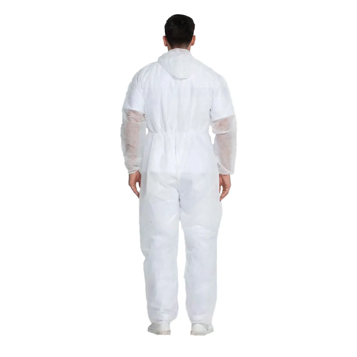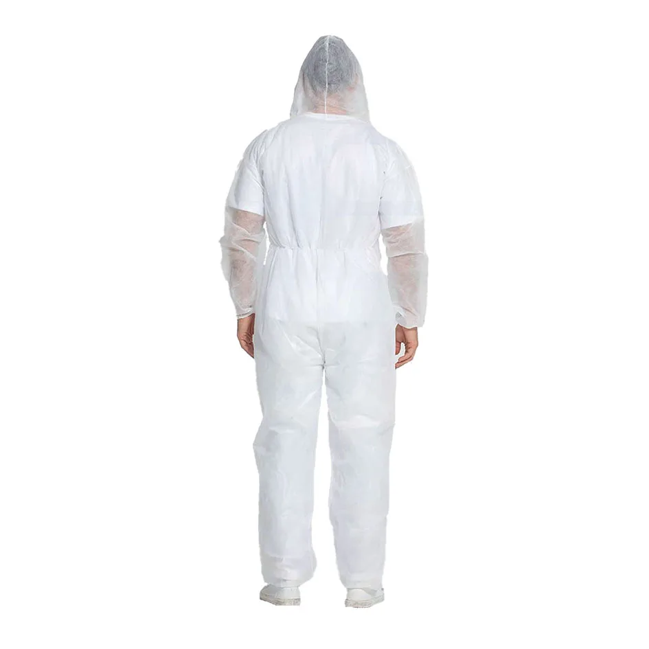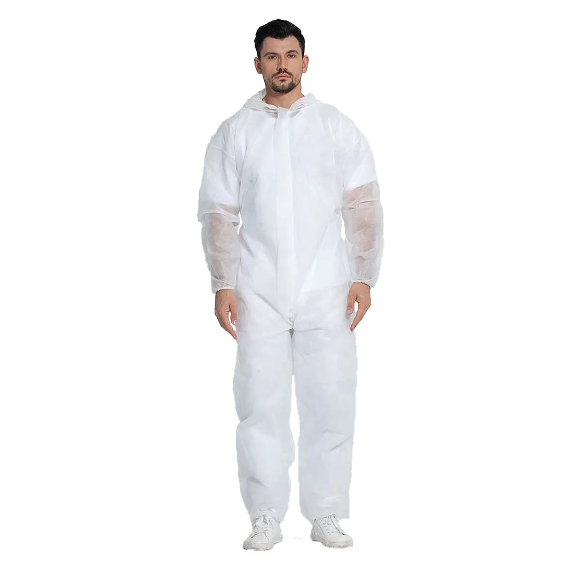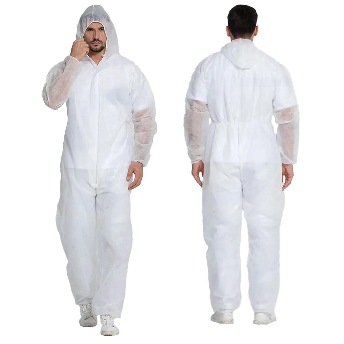 Легкие одноразовые стандартные нетканые полипропиленовые белые комбинезоны с капюшоном