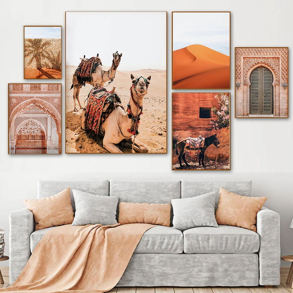 Бохо марокканские постеры Марракеша и печать на холсте картина искусство на стену с изображением верблюда осла домашнее украшение