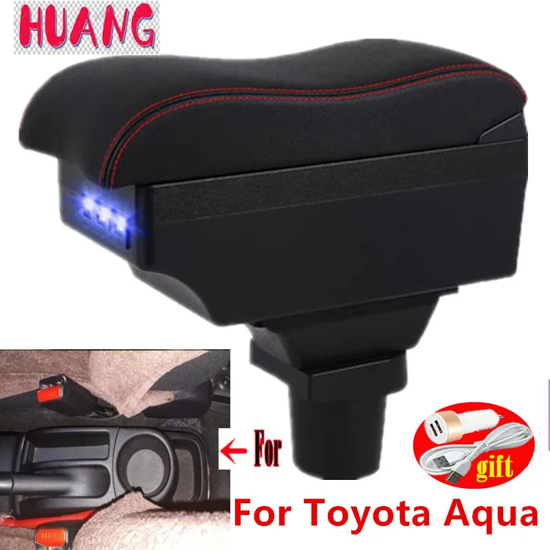 Подлокотник для Toyota Aqua, детали интерьера Toyota Aqua Prius C, специальная модернизация, подлокотник, центральный ящик для хранения с USB-светодиодом