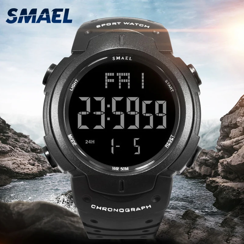Часы наручные SMAEL мужские спортивные, Водонепроницаемые многофункциональные электронные светодиодные простые, с большим циферблатом
