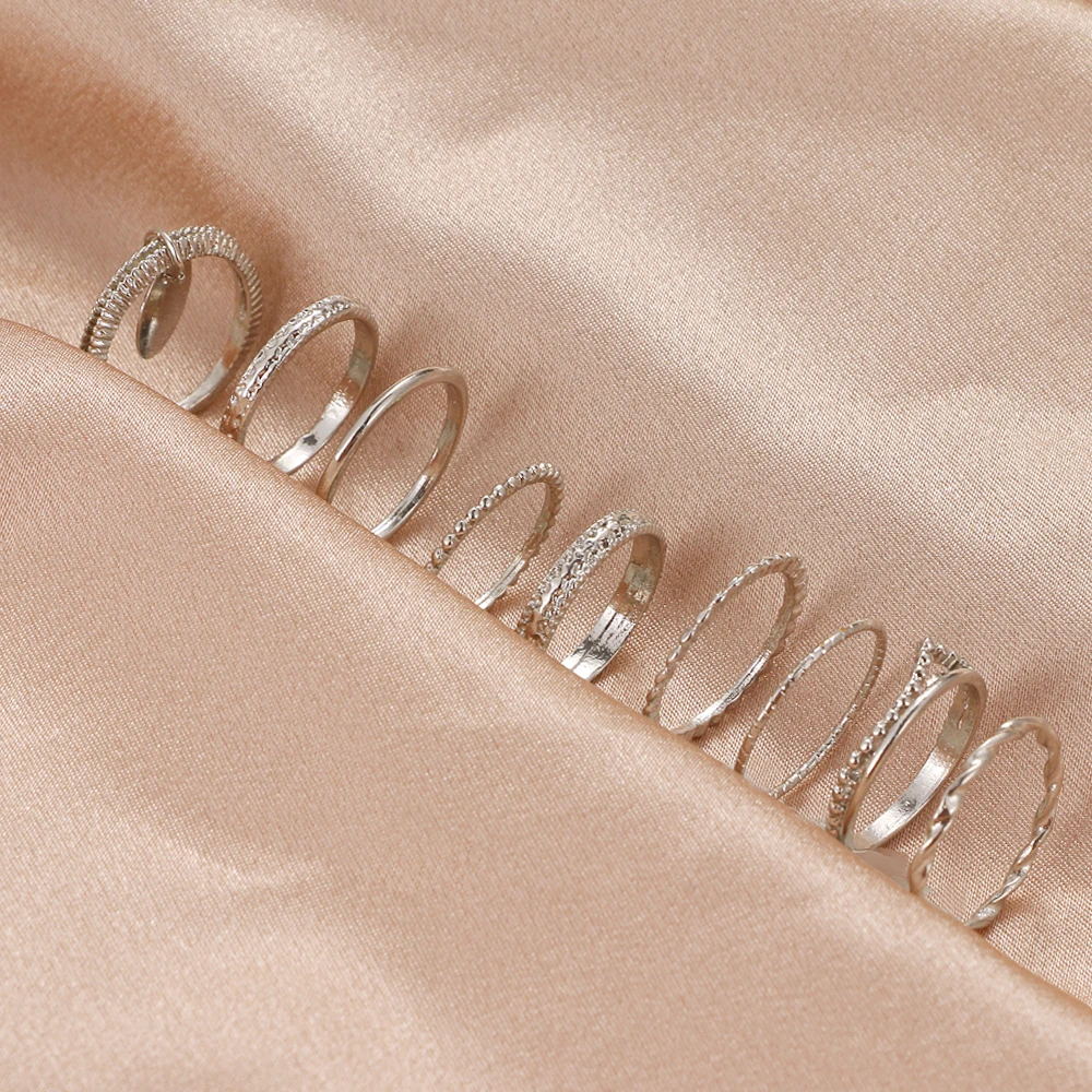 Комплект открытых металлических красных колец в стиле ретро