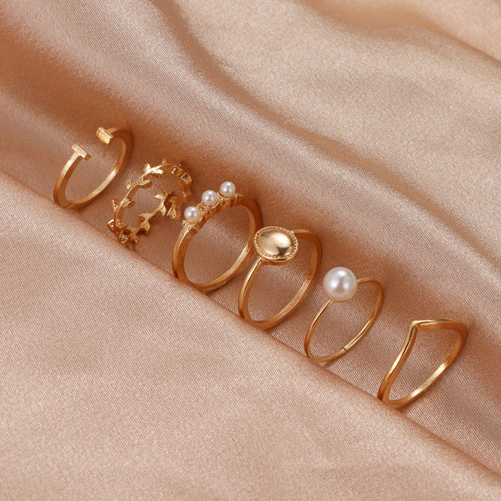 Набор женских винтажных колец ZOVOLI, с кристаллами и жемчугом, зол...