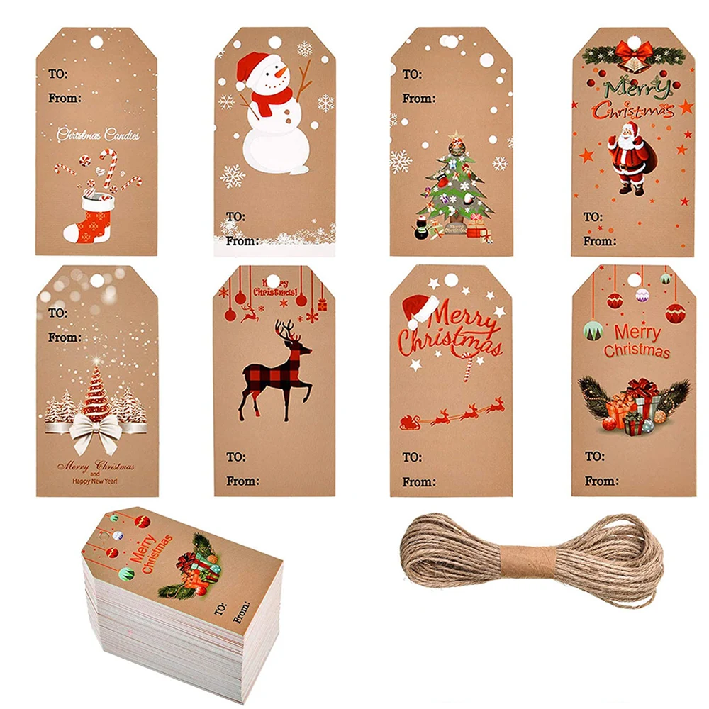 50-100 шт. рождественские бирки, карточка из крафт-бумаги, Подарочная этикетка, бирка сделай сам, подвесные бирки, украшение для подарка, карточка, аксессуары