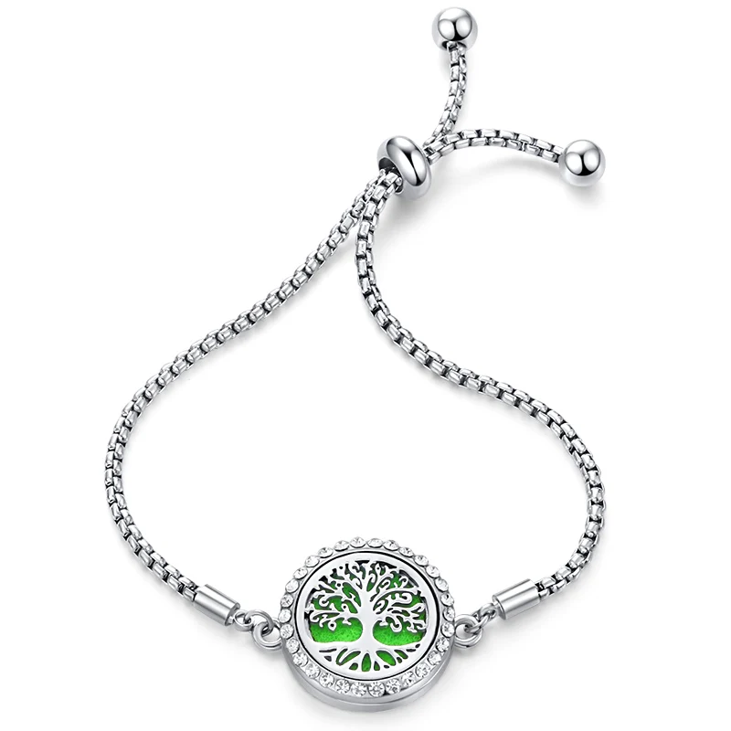 Древо жизни браслет для ароматерапии Регулируемый кристалл из нержавеющей стали циркониевые духи медальон диффузор эфирного масла женский подарок