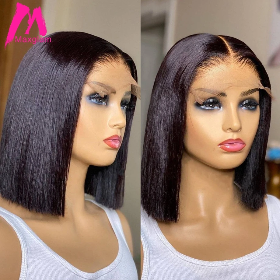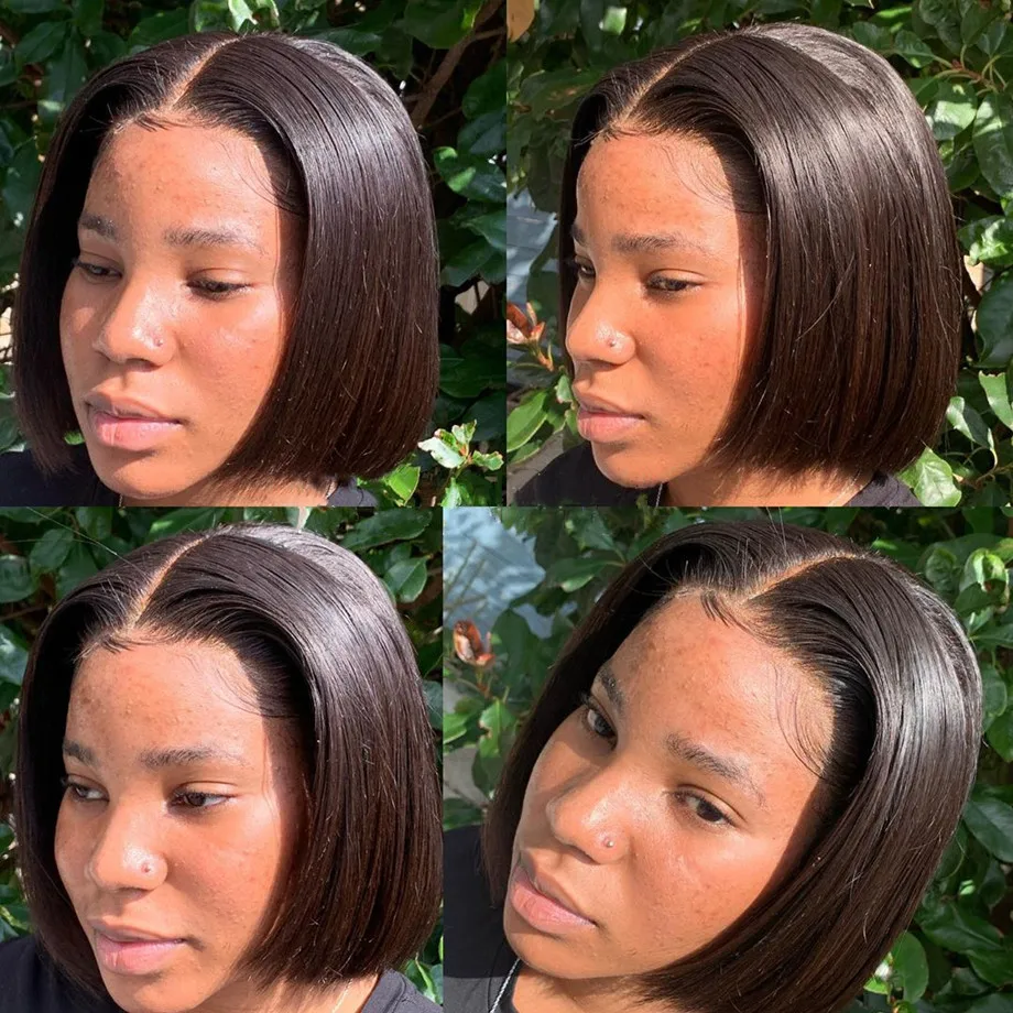 Короткие парики из человеческих волос, бразильские прямые парики из Т-образной части, парики из кружевного Боба, предварительно выщипываемые волосы Remy для черных женщин, парик из натурального Боба