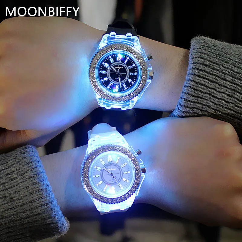 MOONBIFFY, женские светящиеся часы, светодиодный светильник, личностные тренды, для студентов, влюбленных, jellies, женские, мужские часы, светильник, наручные часы 100% фирменные и высокого качества