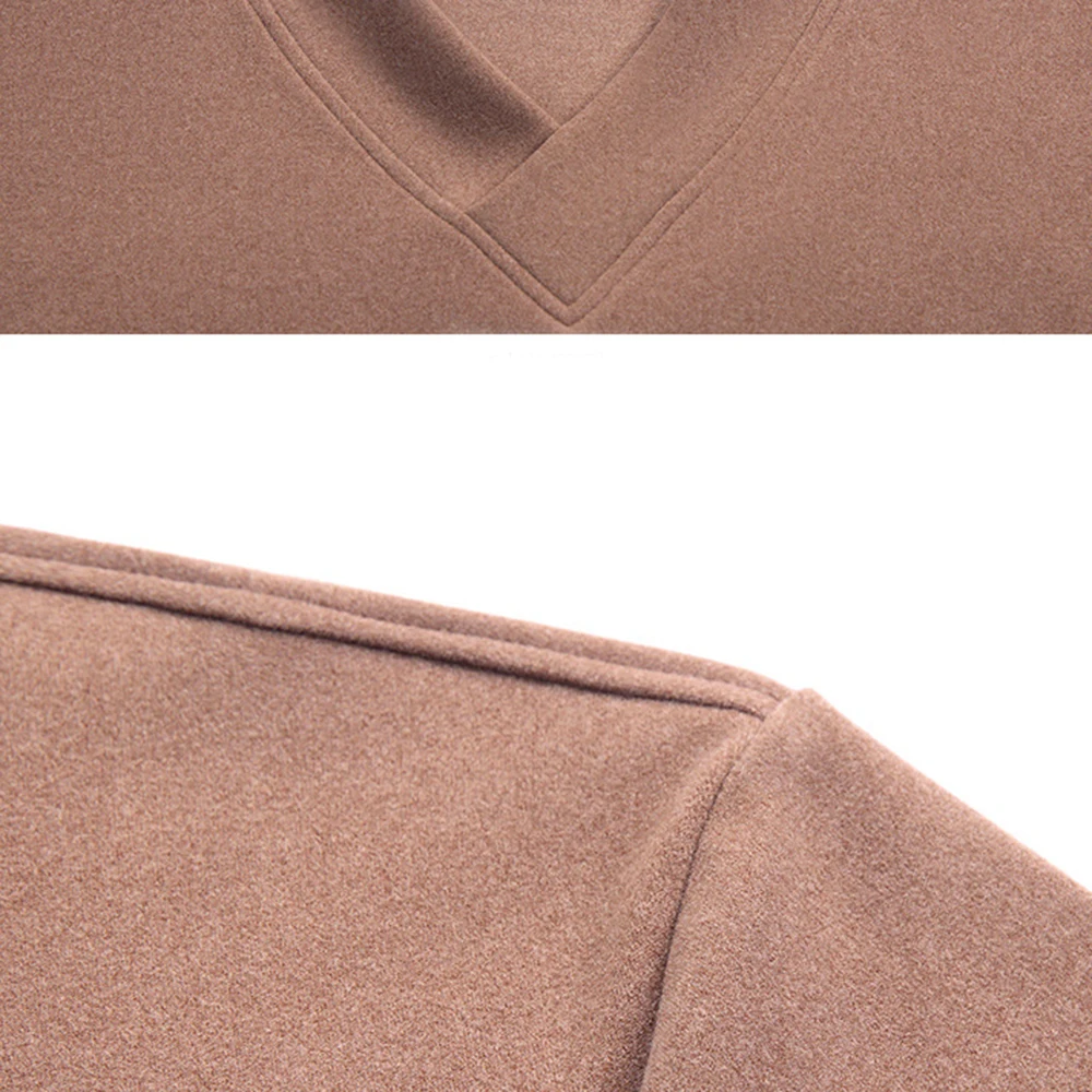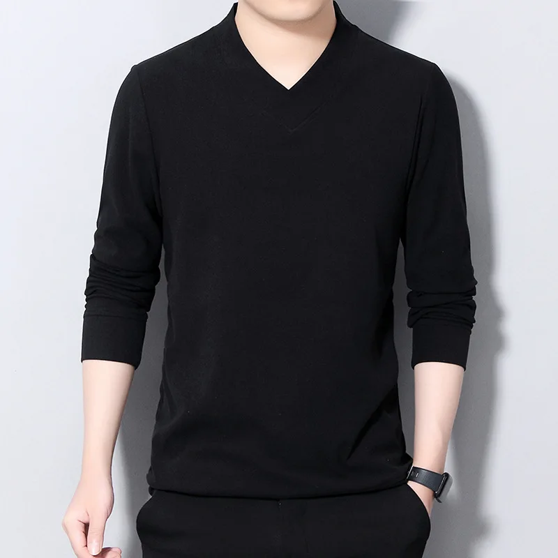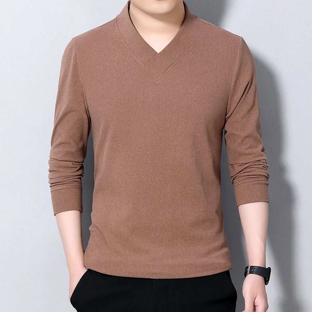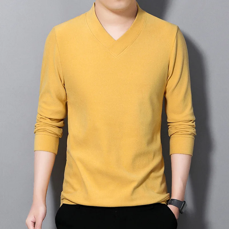 Мужская Однотонная футболка Liseaven, Повседневная Мягкая толстая футболка с длинным рукавом и V-образным вырезом, 6 цветов, для осени и зимы