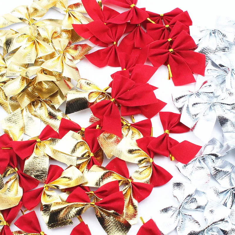 24 шт. рождественские банты, подвесные украшения, золотой, серебряный, красный бант, украшения для рождественской елки, новый год 2020, Рождественский Декор