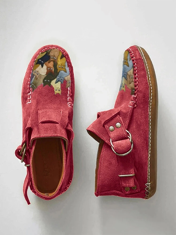 Женские кожаные ботильоны на плоской подошве, с принтом кота из мул...