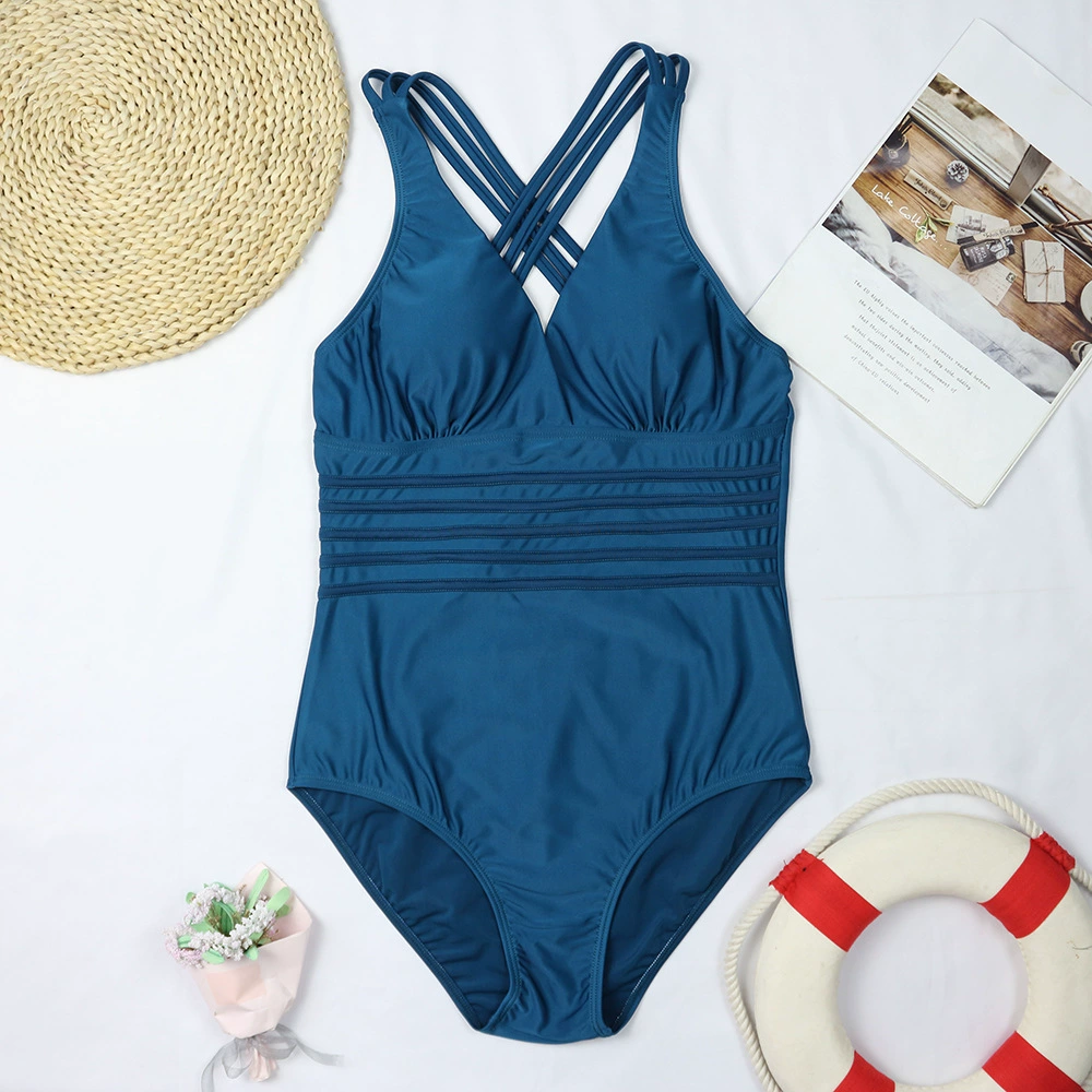 Женский сплошной купальник с V-образным вырезом и открытой спиной