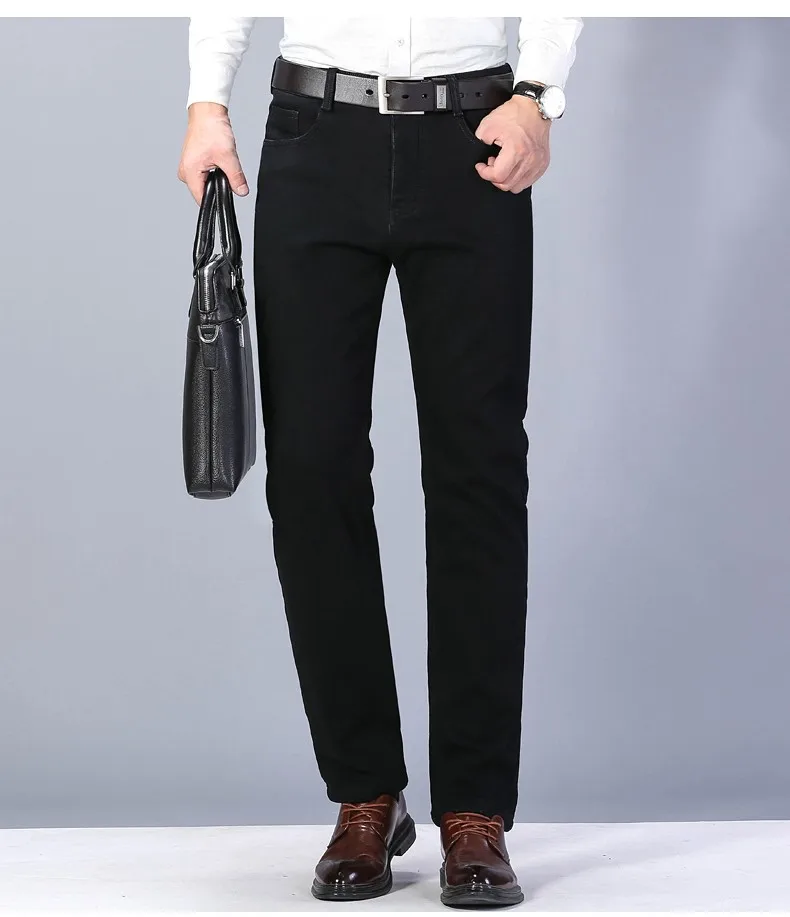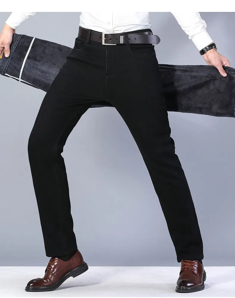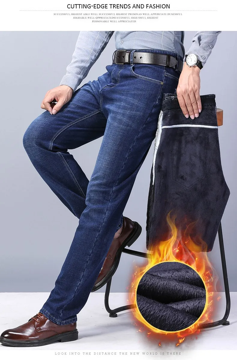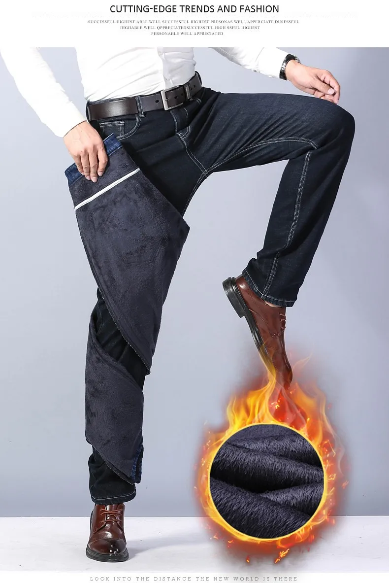 2021 брендовые зимние теплые флисовые мужские джинсы, толстые Стрейчевые джинсы, прямые брюки, модные мужские хлопковые брюки для мужчин