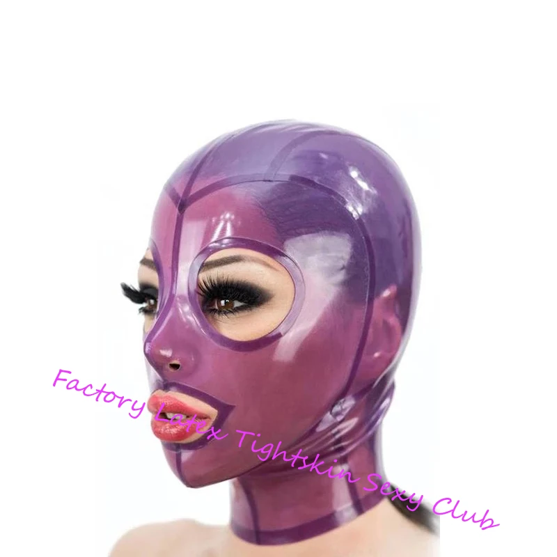 Прозрачный пурпурный латексный капюшон с задней молнией, резиновая маска для девочек, одежда для клубной вечеринки, костюм, костюмы на Хэллоуин для женщин