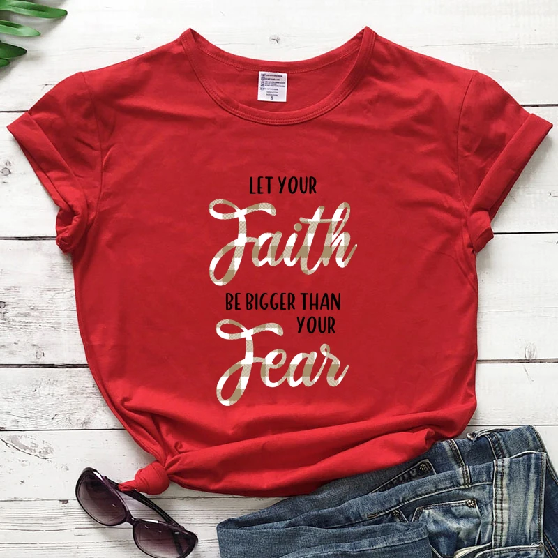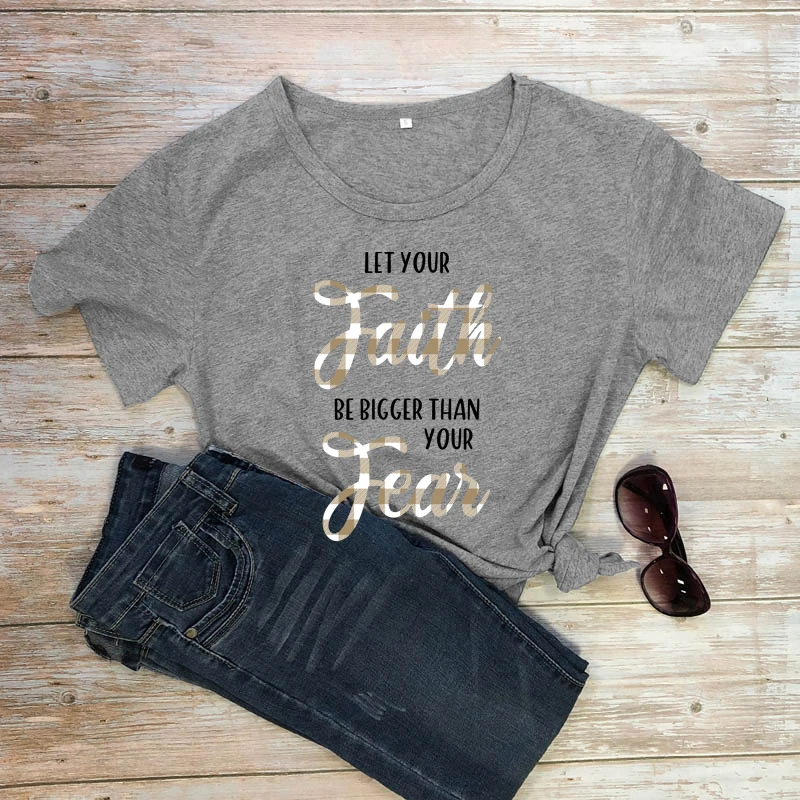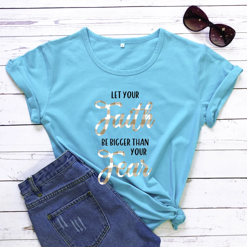 Ретро клетчатая футболка с надписью Пусть ваша вера будет больше ваших страхов, винтажные женские мотивирующие христианские цитаты, футболки