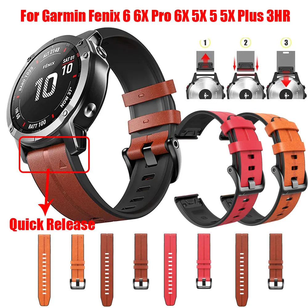 Горячее предложение 26 22 мм ремешок для часов для Garmin Fenix 5X 5 5X Plus 3 3HR 6 6X 6X Pro, быстро снимаемые кожаные часы, легко подходят для наручных ремешков