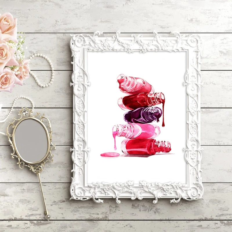 Лак для ногтей, печать макияж иллюстрация красота декор для ванной комнаты искусство на холсте Рисование ногтей студийное Украшение стен