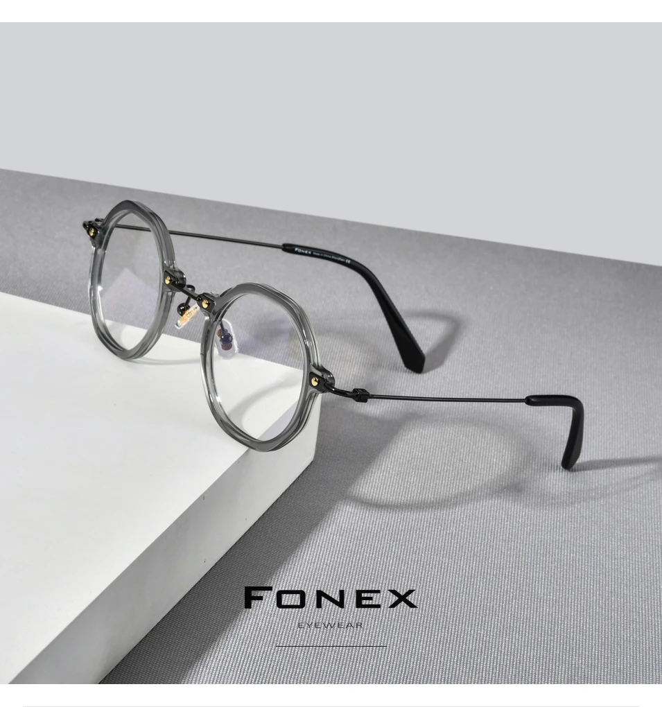FONEX Мужская и женская круглая оправа, винтажная оправа из чистого...