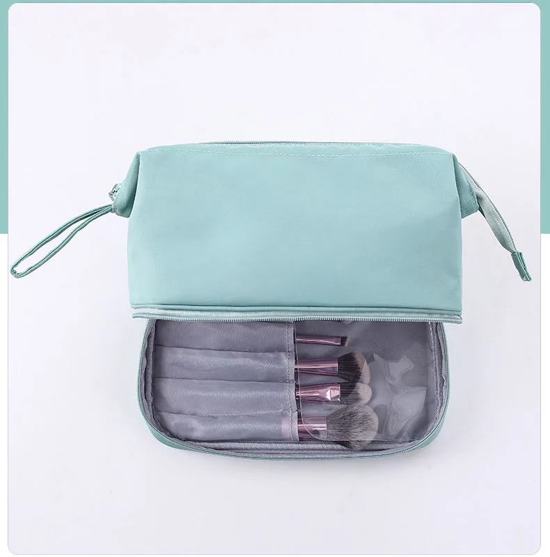 Персонализированная простая нейлоновая сумка для хранения с высокой текстурой, сумка для двойной стирки с индивидуальной вышивкой, вместительная портативная косметичка для бровей