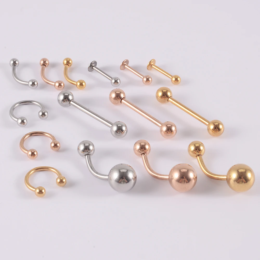 7pcs 14g хирургические Сталь Титан анодированный язык прямой штанго...
