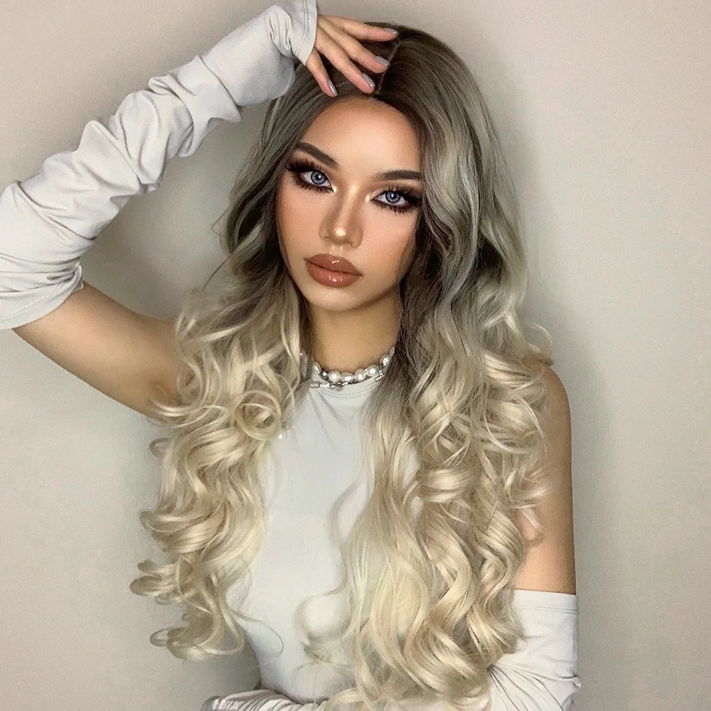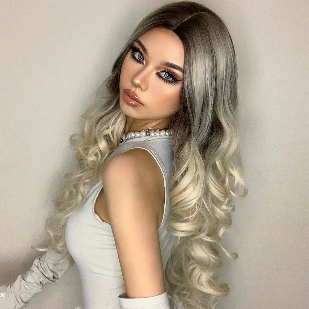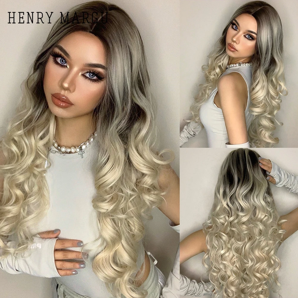 Длинные натуральные волнистые синтетические парики HENRY MARGU, темно-коричневые и светлые парики с Омбре для черных женщин, вечерние термостойкие парики для косплея