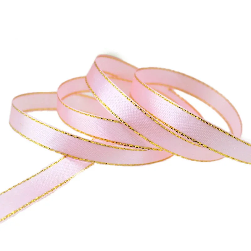 (25 ярдовпартия) 10 мм атласная лента с золотыми краями, оптовая продажа, высококачественные ленты ручной работы