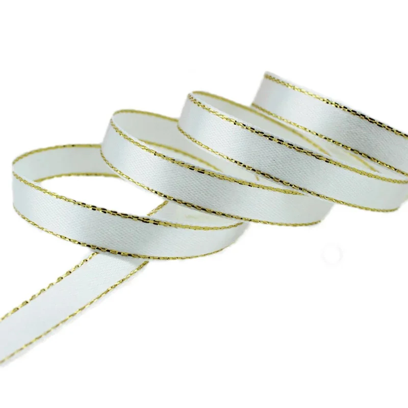 (25 ярдовпартия) 10 мм атласная лента с золотым краем оптовая прода...